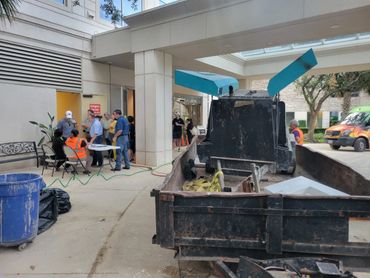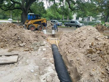 We were chosen to stop leak at the Royalton at River Oaks when a pipe bursted. The leak was so strong it busted thru concrete. We took on the task of breaking the concrete in order to find the leak. We had to work under water. Bringing in air hammers, dump truck, skidsteer within 1 hr of pipe bursting. We were able to pump water off while breaking concrete at same time. Once we broke the concrete we continued digging unitl we found broken pipe and cleared it for firefighter and city officials.
