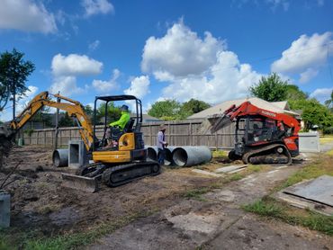 Based on Grading and Drainage drawing provided to us , we will be able to install drainage catch basins stations and drainage pipe. We will then grade terrain towards drain or in direction directed to us by elevations in drawing or provided by contractor/owner.